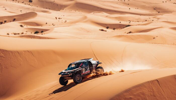 Deschizând traseul în urma victoriei din Etapa a 2-a, Nasser Al-Attiyah și Fabian Lurquin au făcut față cu brio provocării de a fi primii pe un traseu compus în mare parte din dune de nisip, drumuri de pământ și teren stâncos.