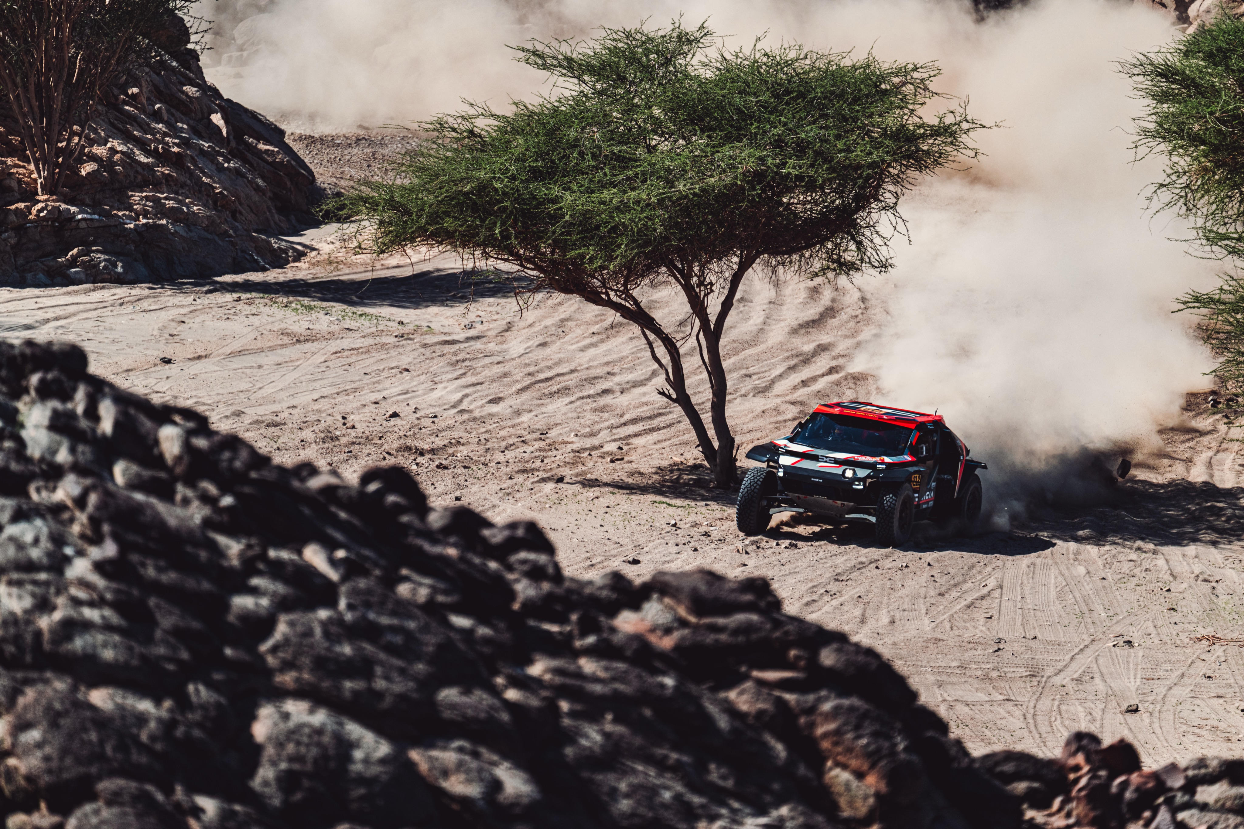 Prima etapă adevărată a Dakarului 2026 aduce varietate: secțiuni pietroase la start, pasaje înguste și teren dificil, cu risc ridicat de producere a unor pene. La mijlocul traseului este prevăzut un „pitstop” pentru schimbarea pneurilor, urmat de o porțiune rapidă spre finiș, prin zone nisipoase presărate cu dune mici.